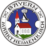 Durch Erlass des Bayerischen Innenministeriums wurde der Marktgemeinde Heimenkirch am 06.01.1937 das Recht verliehen ein Wappen zu führen. In Blau auf grünem Boden eine silberne Kirche mit spitzbedachtem Turm; Kirchen- und Turmdach in Rot. Über dem Langhaus schwebt ein spitzer, silberner Stulphut, dessen Gupf mit einem schwarzen Schrägbalken belegt und mit einem silbernen Reiherfederbusch besteckt ist. Das Wappen versinnbildlicht den Gemeindenamen durch die Kirche und weist ferner auf das 1892 ausgestorbene, reichsritterliche Geschlecht der Syrgensteiner durch Übernahme ihrer Helmzier hin.